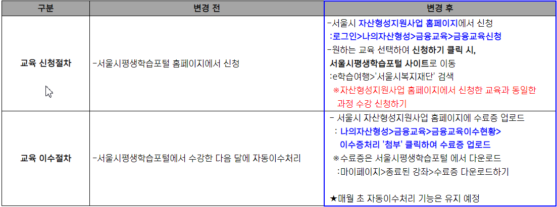 개인정보 (주민번호, 연락처, 주소 등) 변경되었을 경우 서울시 자산형성지원사업 홈페이지 내 개인정보 변경을 통해 직접 변경해줘야 합니다.